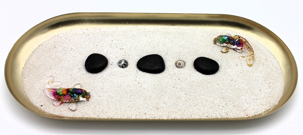 Jardin zen - plateau doré et poissons
